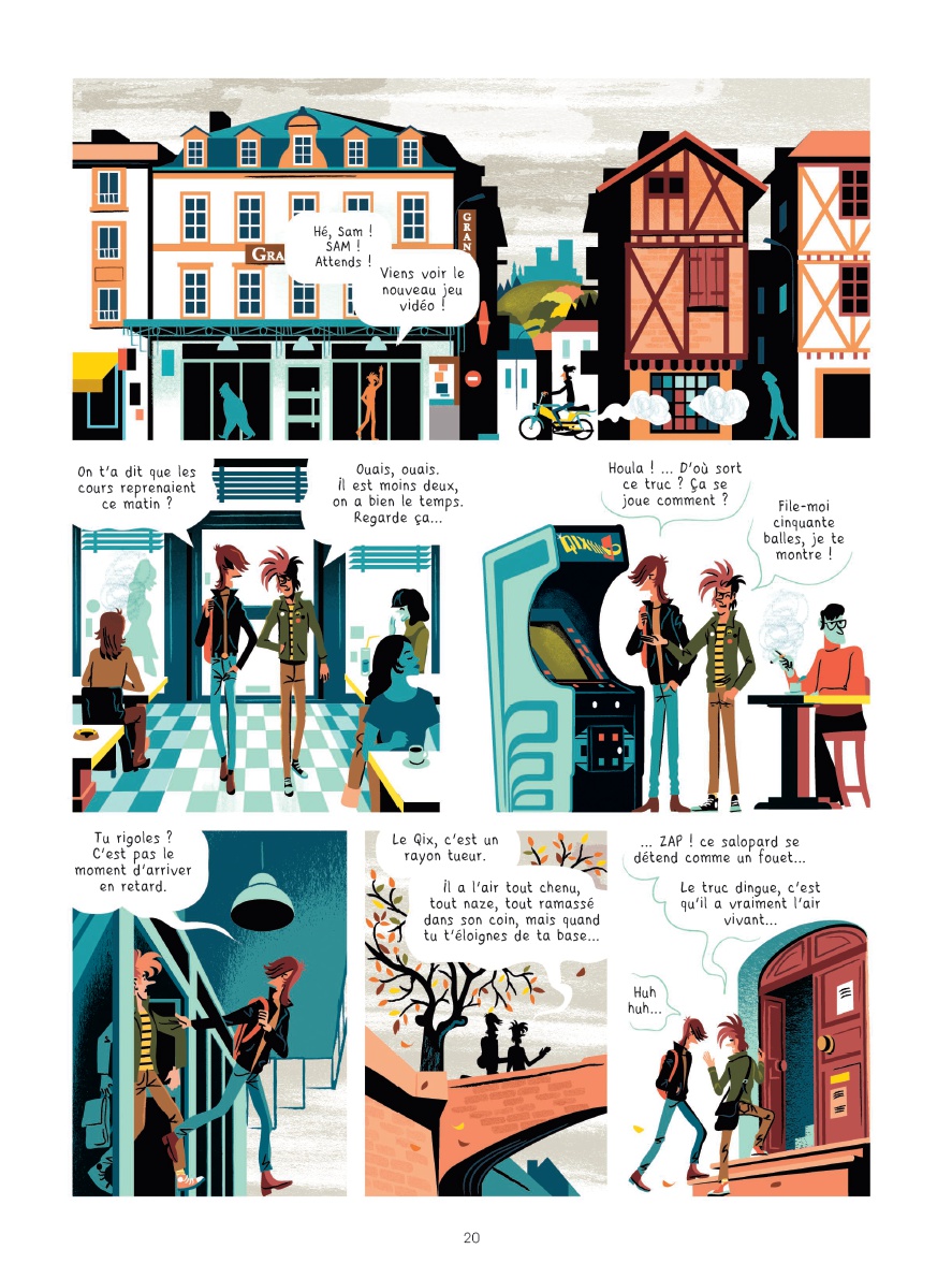 Mon avis : Une couverture psychédélique qui attire forcément l’œil, et puis le nom des auteurs qui me rappelle le coup de cœur pour L'été diabolik et les années 60, je ne pouvais que tenter cette nouvelle aventure. D'autant qu'elle s'inscrit dans un contexte de nostalgie pour les années 80, qu'il soit vestimentaire, musical ou télévisuel, voire ludique avec le retour aux jeux de rôle et vidéo. On y retrouve le dessin si caractéristique et emballant de Clérisse, ses lignes claires et rectilignes agrémentées de couleurs plus sombres que d'habitude.